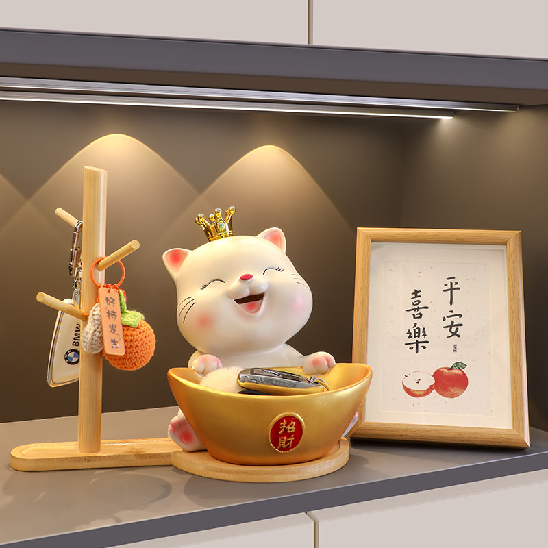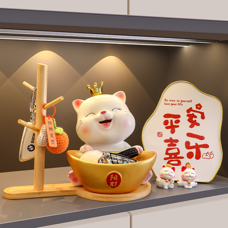招财猫入户门口玄关钥匙收纳摆件客厅家居装饰品乔迁新居礼品H100