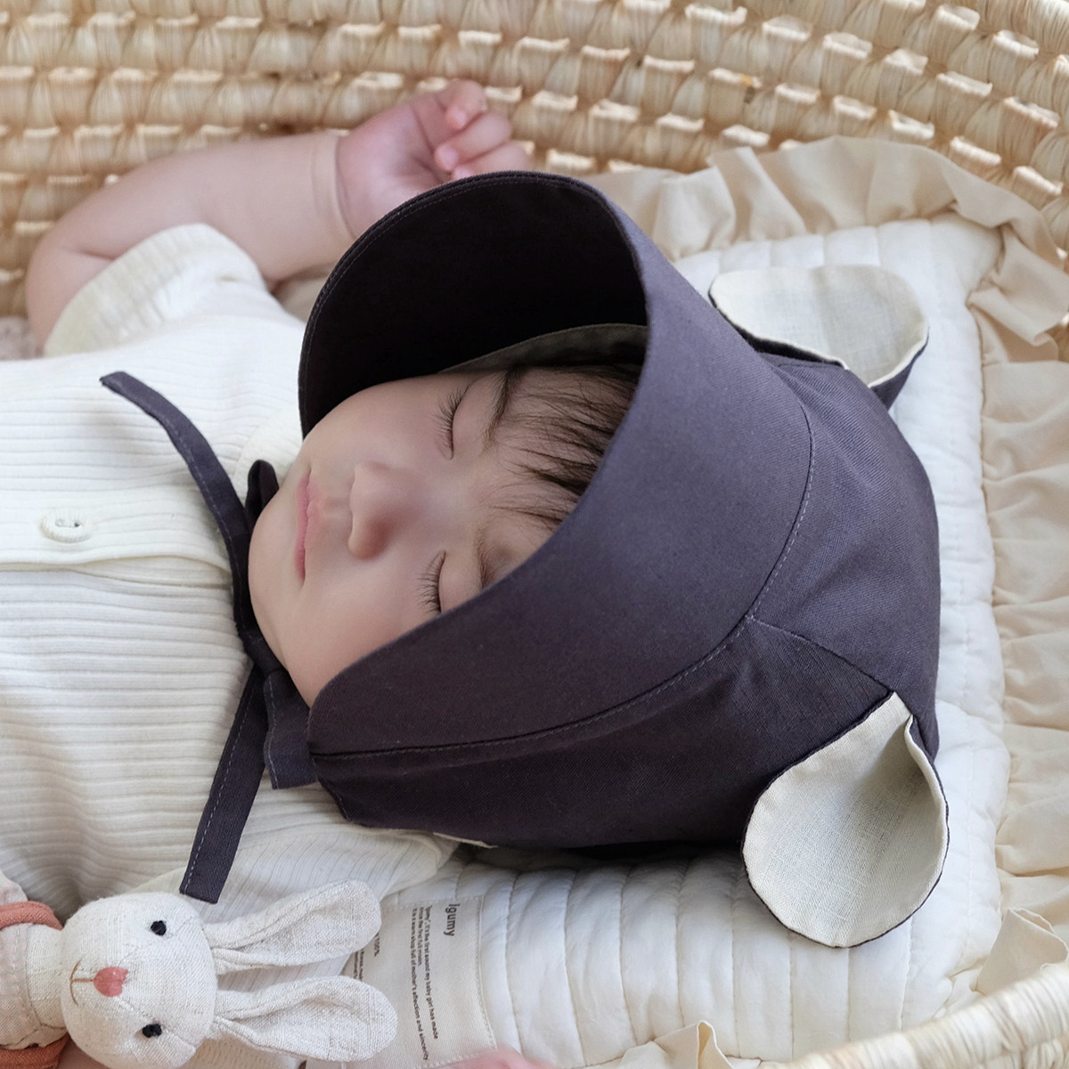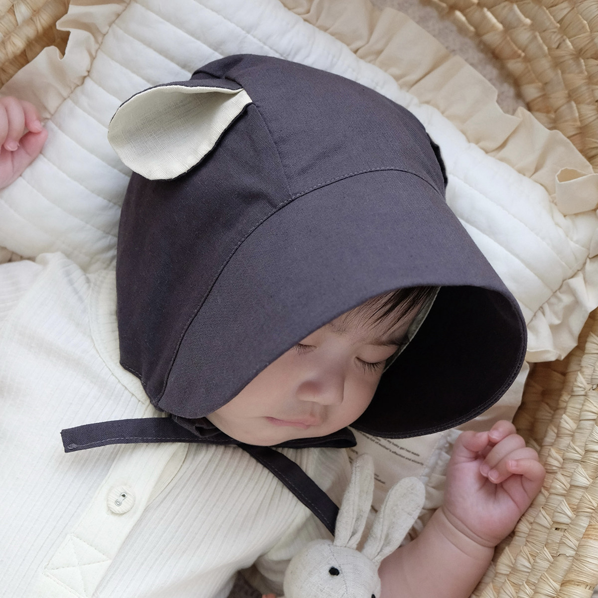 婴儿帽子夏季薄款亚麻透气可爱小熊大帽檐防晒儿童男女宝宝遮阳帽