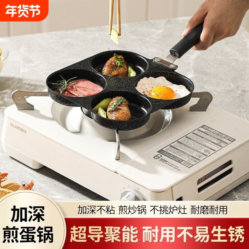 新款家用铸铁煎蛋神器加深鸡蛋汉堡锅无涂层蛋饺锅平底煎锅不粘锅