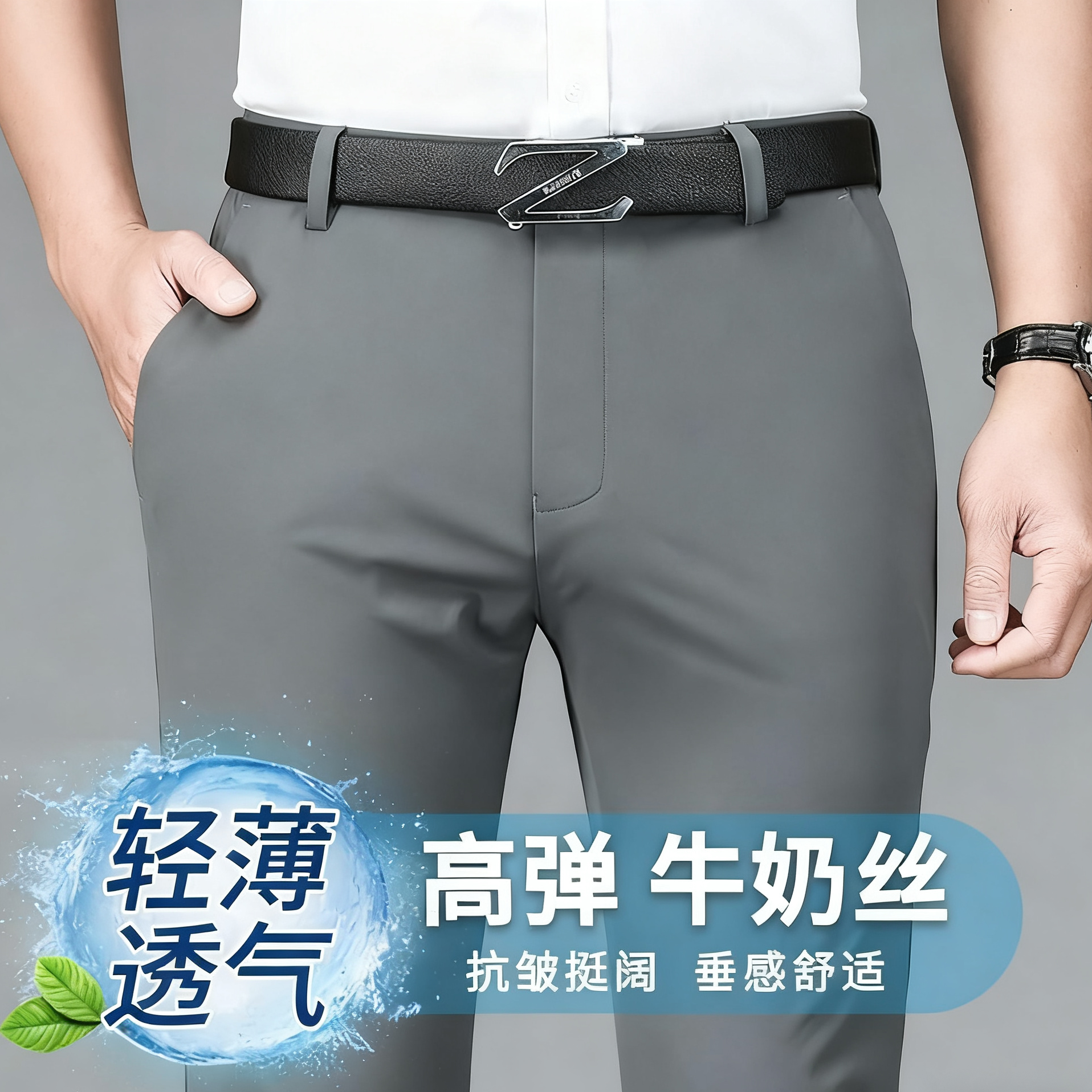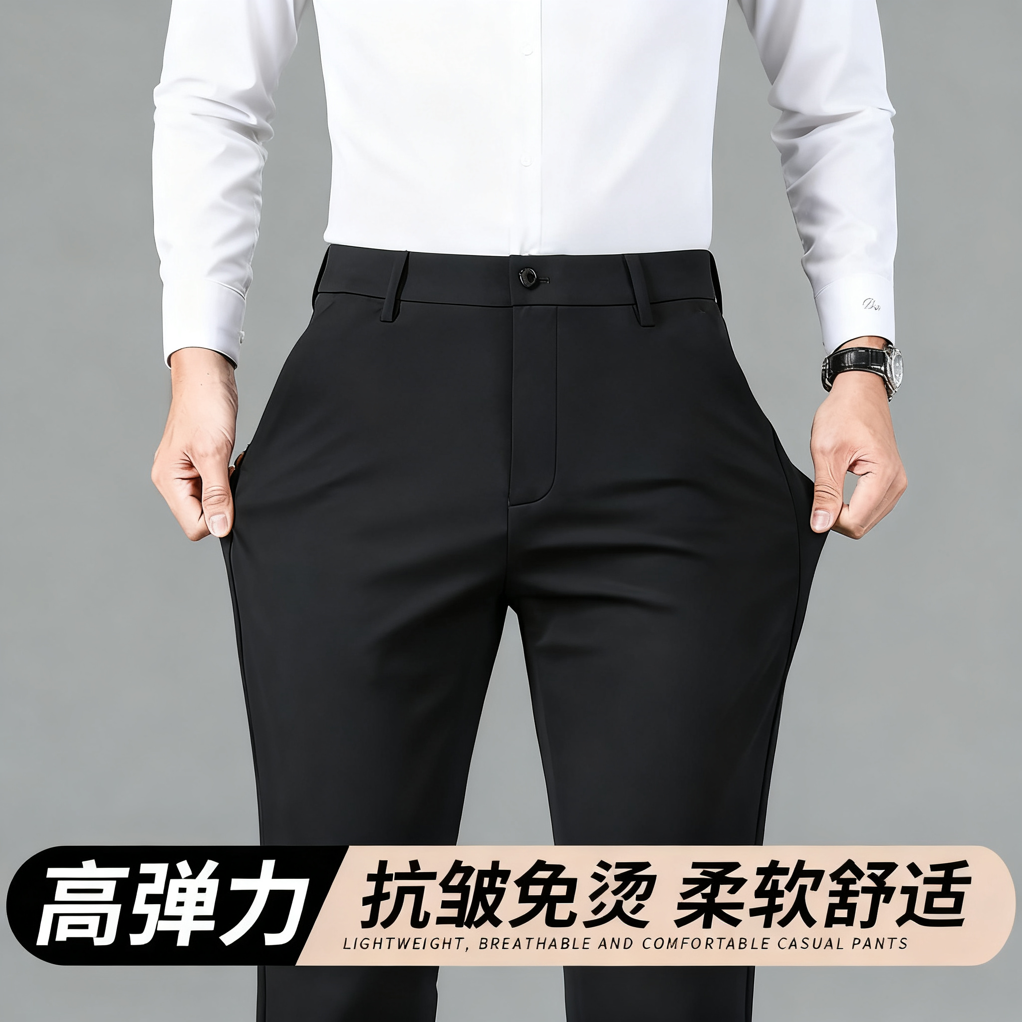 【四面弹牛奶丝】男士商务休闲裤长裤薄款冰丝高弹力免烫工装西裤