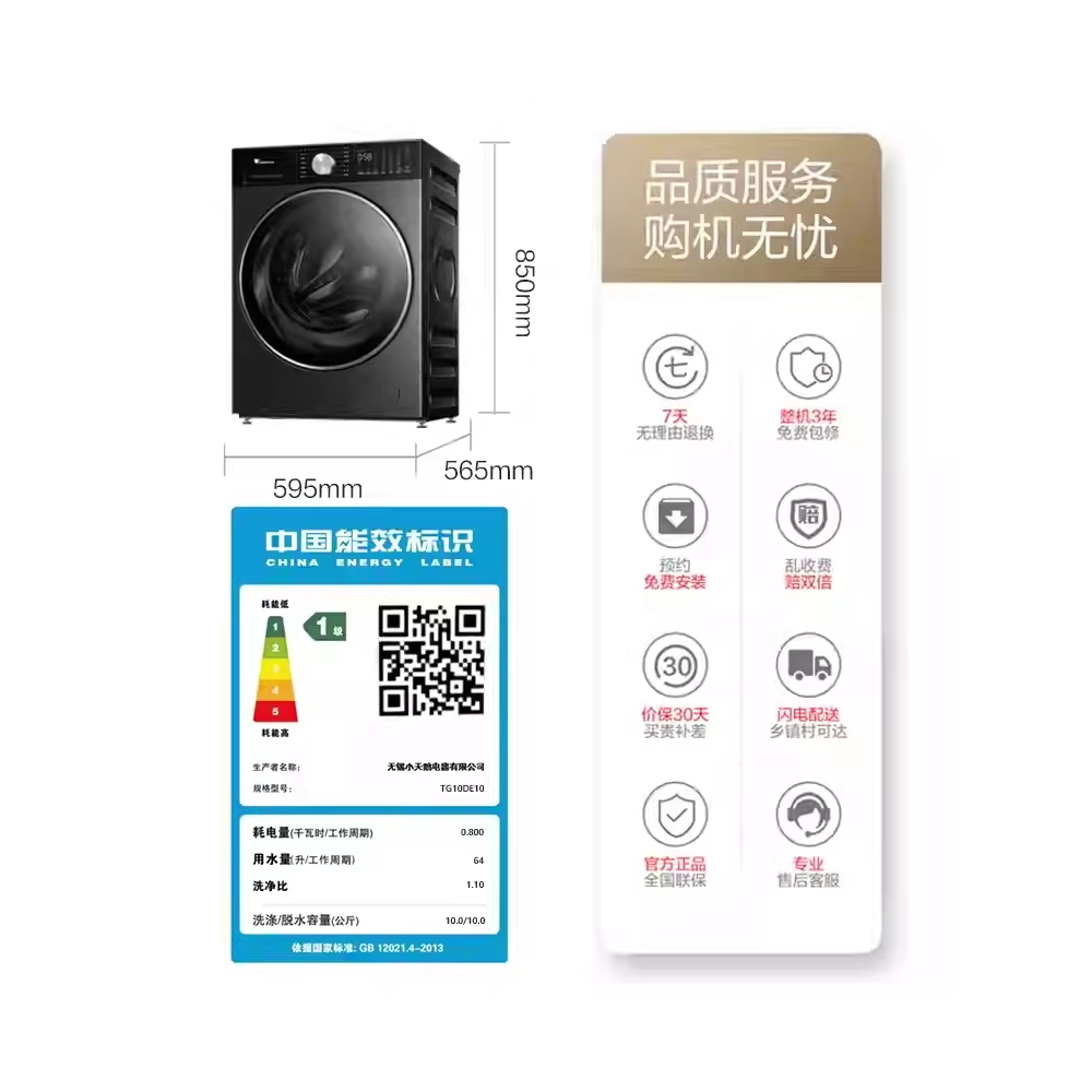 [小乌梅3.0轻享版]小天鹅家用10kg全自动洗脱一体洗衣机TG10DE10