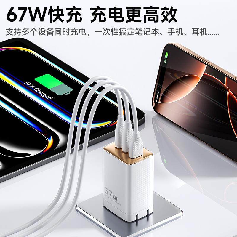 67W氮化镓充电器快充充电头PD适用苹果17手机iPhone15平板华为安卓通用笔记本多口插头type-c闪充