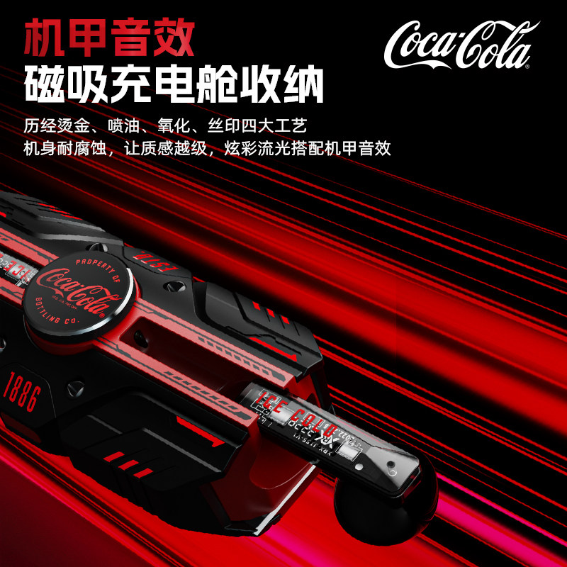 Coca-Cola/可口可乐T23指尖陀螺蓝牙耳机无线赛博风半入耳式正版