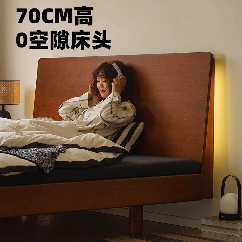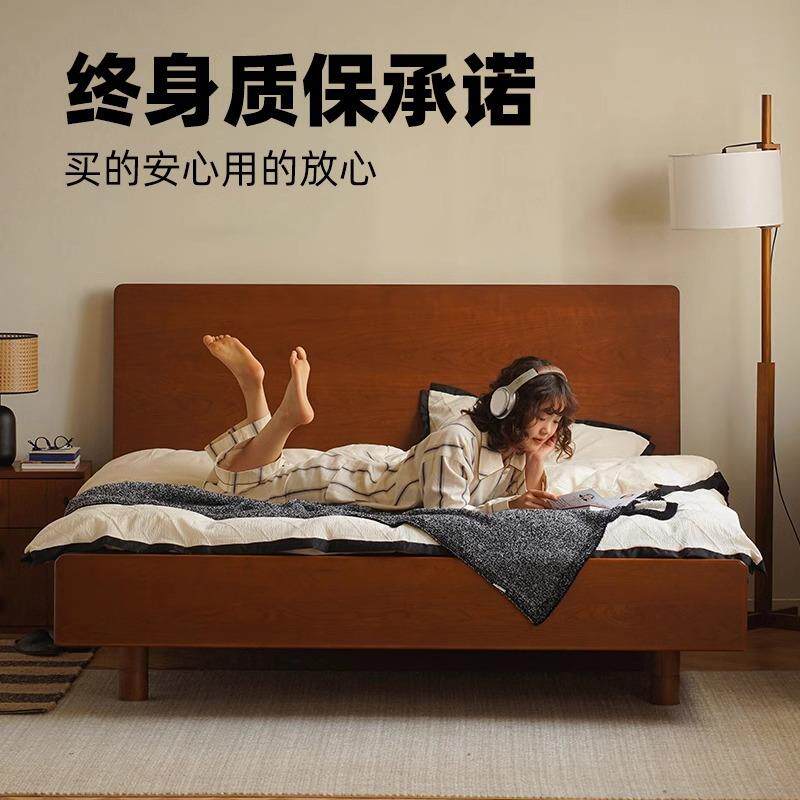 欧拉家具北欧复古卧室实木床1.5m齐边床悬浮床1.8米主卧双人床