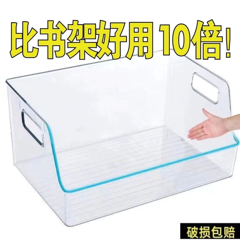 书本收纳盒透明桌面储物箱儿童书桌绘本整理筐书立架长方形零食