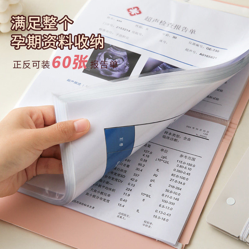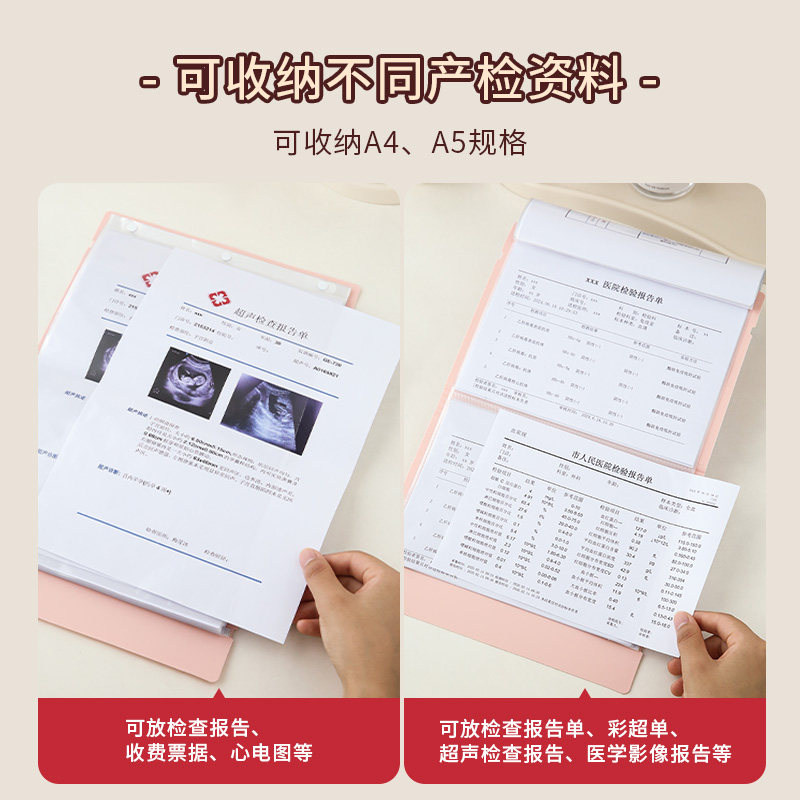 孕检收纳册孕妈产检报告单记录册孕妇b超检查资料病厉档案袋孕期体检a5手册本马宝宝怀孕包可折叠活页文件夹