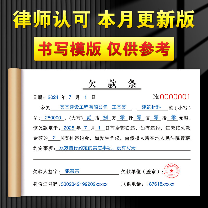 【正规法律版】欠款条定制材料欠条本建材欠账单装修结欠款催款单据个人购货还款账条单对帐协议工地赊欠合同