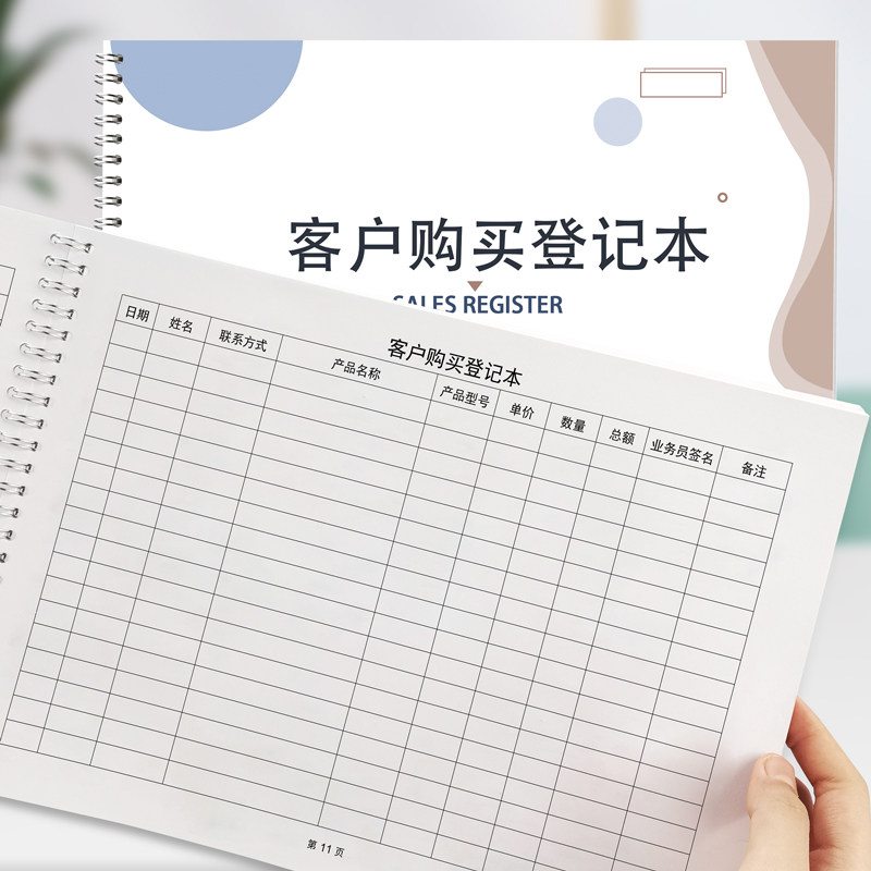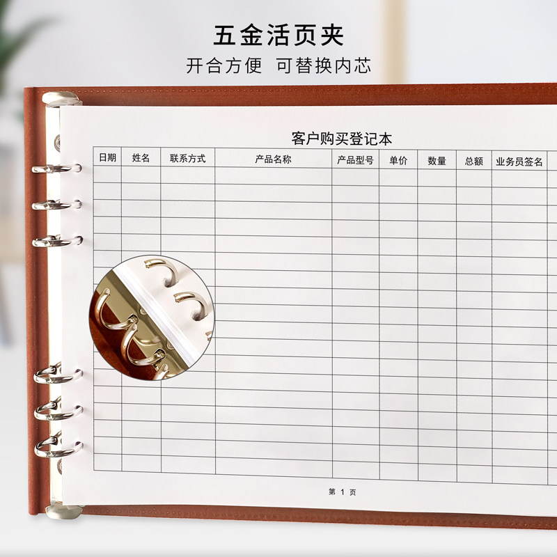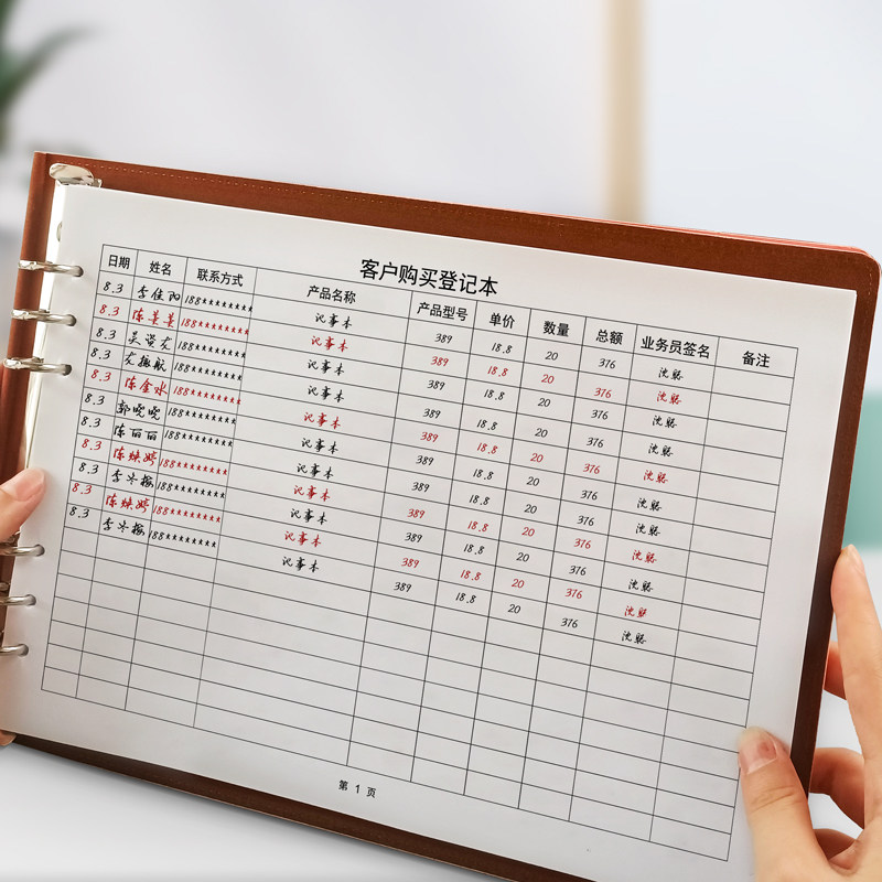 客户购买登记本出货销售报表登记簿顾客进店登记消费记录册理发店建材商品清单明细活页夹横向A4营业额记账本