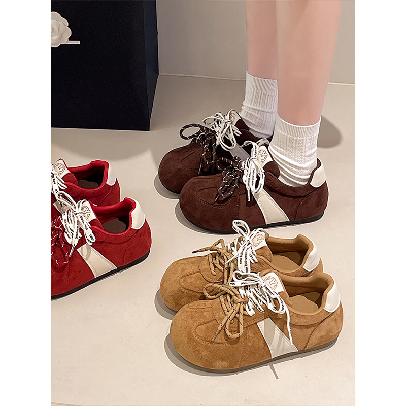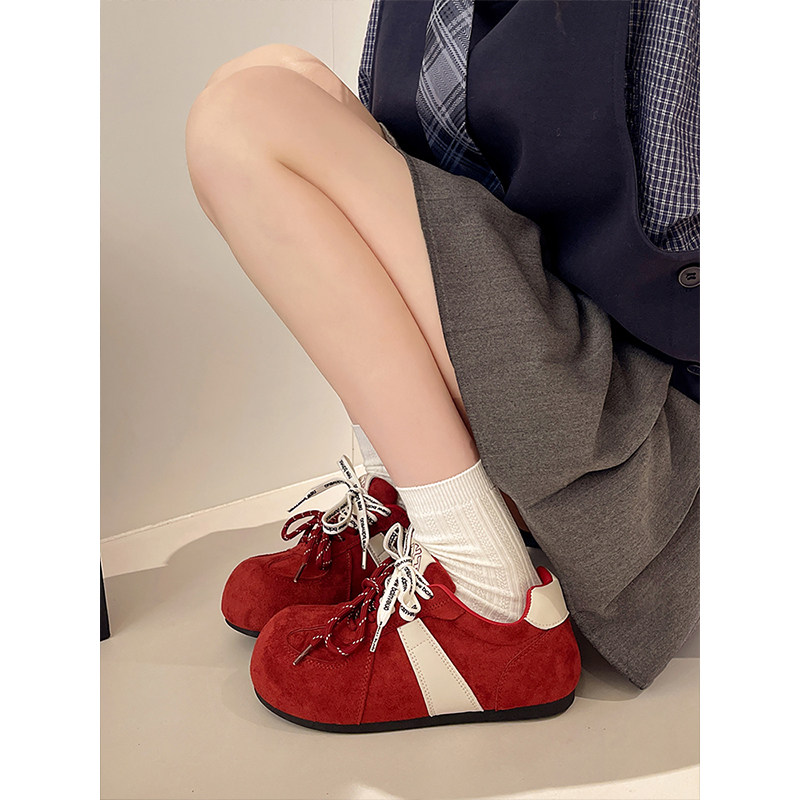 香港真皮红色复古厚底内增高德训鞋女2025新款秋季休闲阿甘运动鞋
