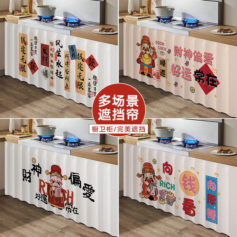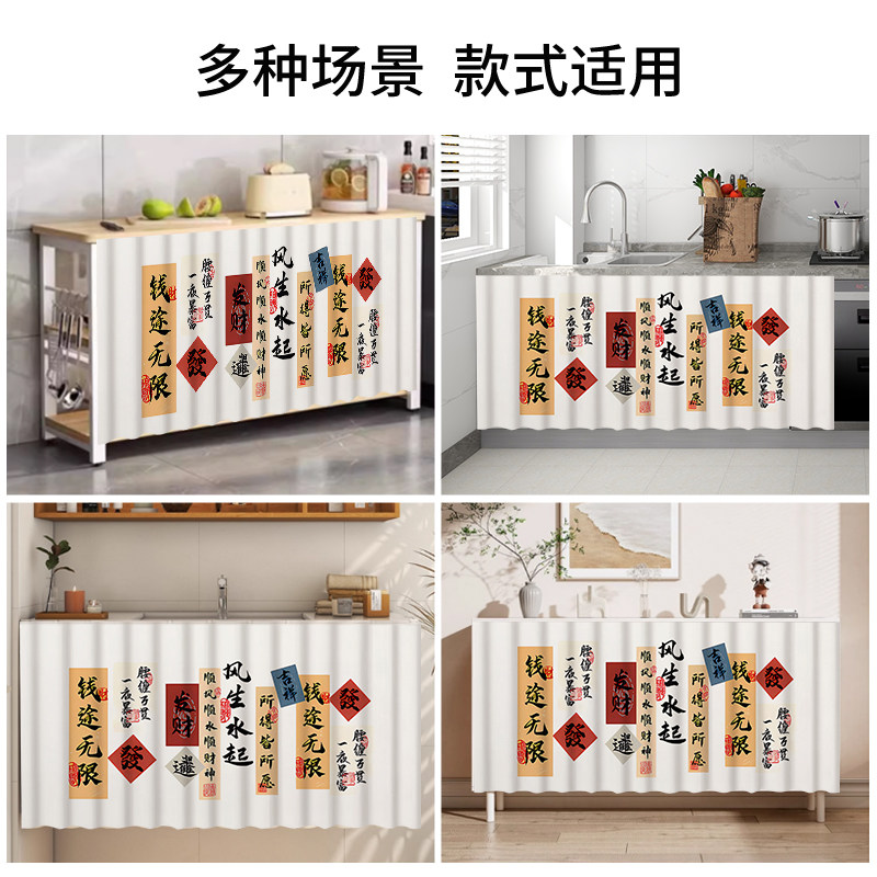 厨房柜子遮挡帘防水杂物柜布帘橱柜防尘帘隔断帘置物架遮丑帘滑轨