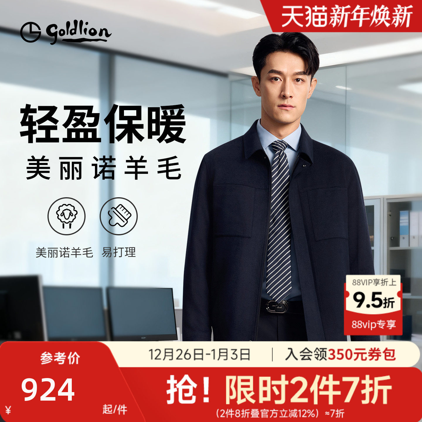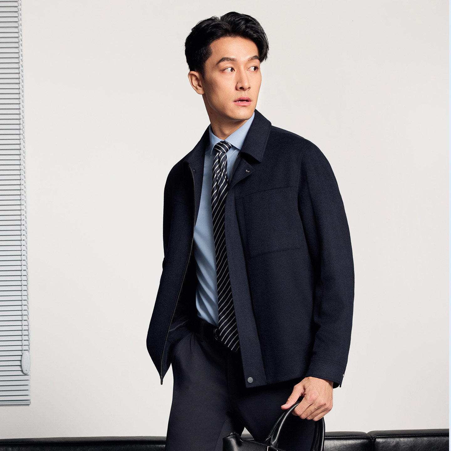 【羊毛】金利来2025秋冬新款男夹克时尚轻暖毛呢翻领商务休闲外套