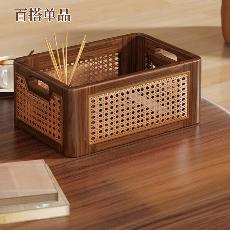 实木藤编桌面收纳篮家用玩具杂物储物筐客厅遥控收纳筐零食整理筐