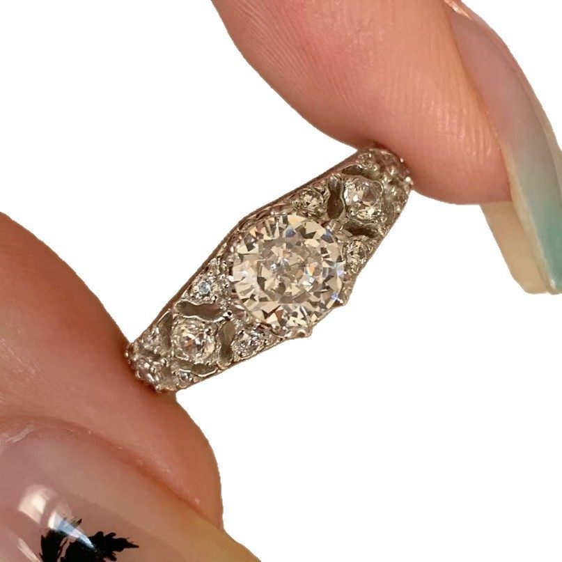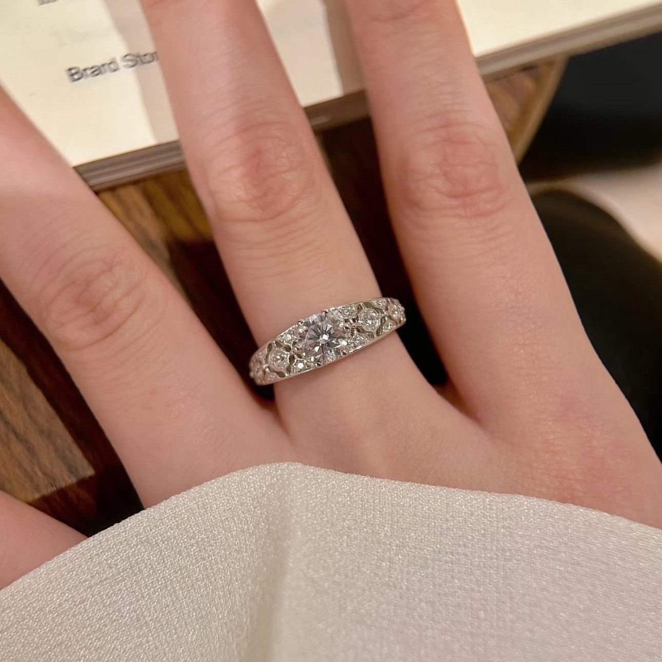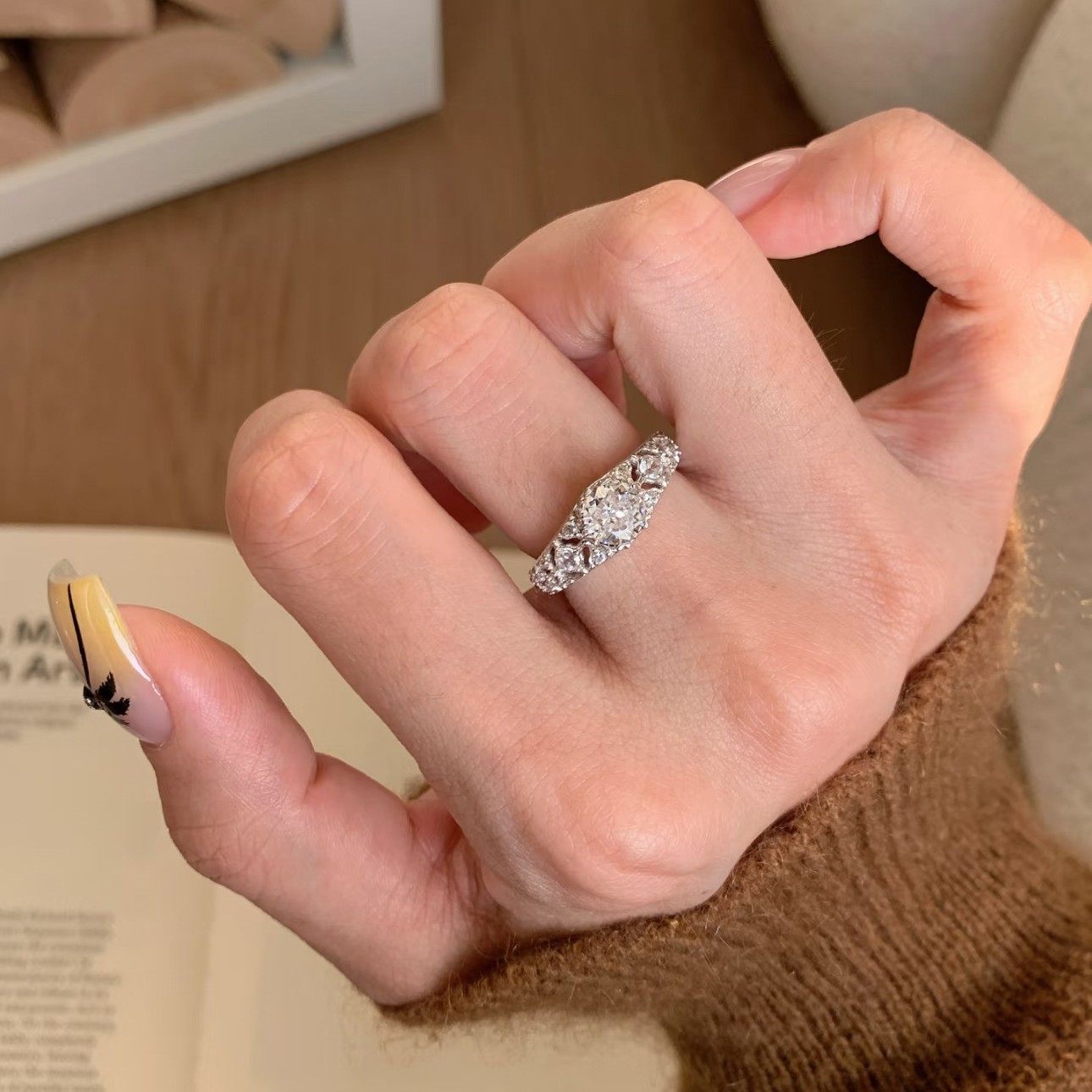 微镶锆石镂空蕾丝戒指新中式复古宫廷风轻奢小众设计高级感食指戒