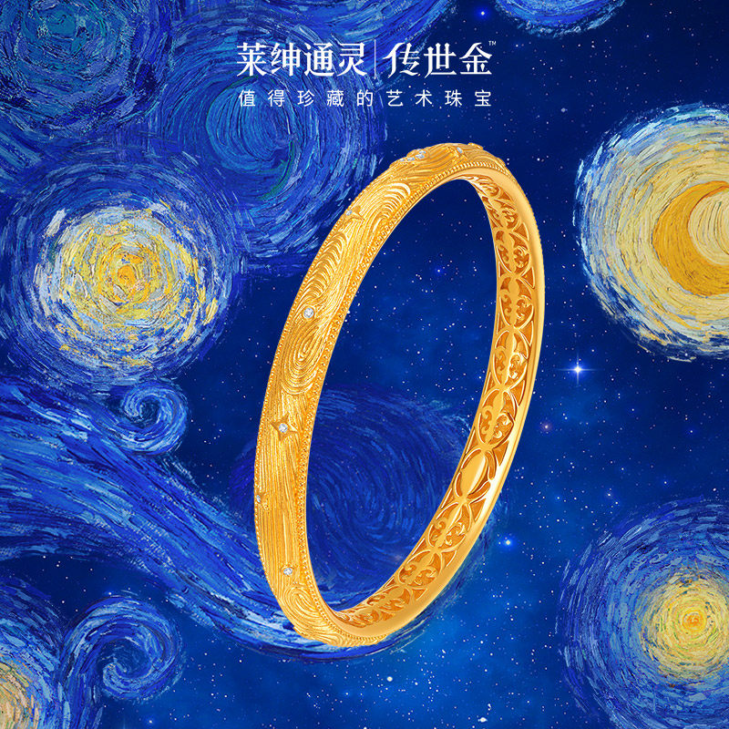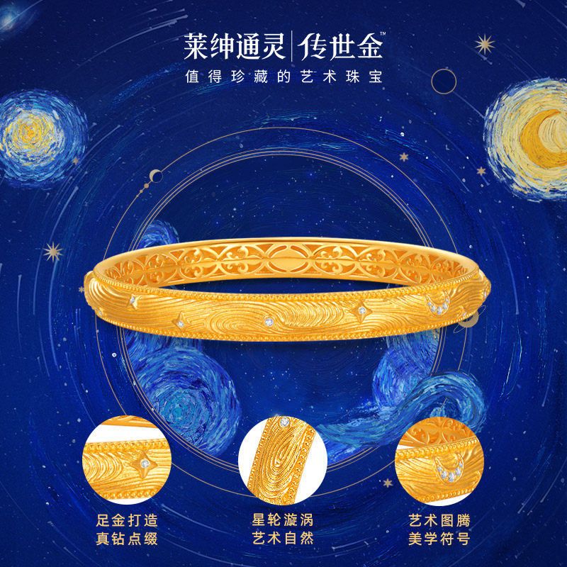【商场同款】莱绅通灵 艺术馆系列转运星轮 足金999黄金钻石手镯