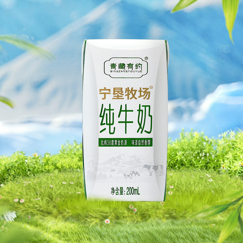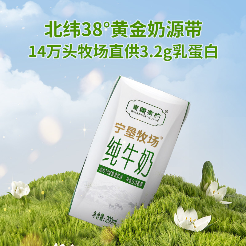 宁垦牧场200ml*12盒整箱青藏有约3.2g纯牛奶学生营养早餐奶生牛乳