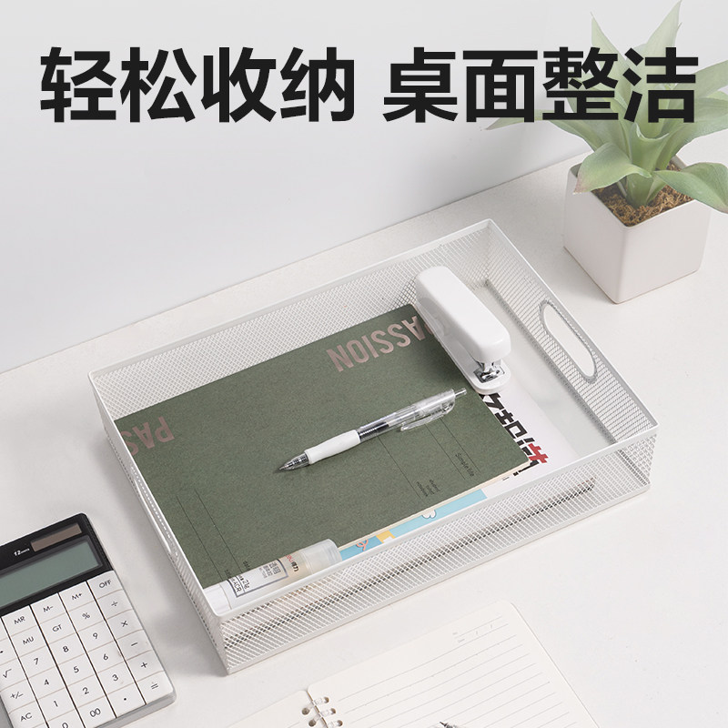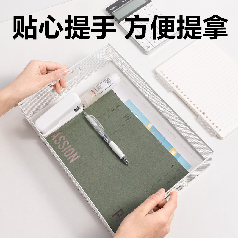 得力金属文件框桌面收纳盒办公室书架书立书本收纳架书本整理网状公文篮文件篮文件筐A4资料整理框办公用品