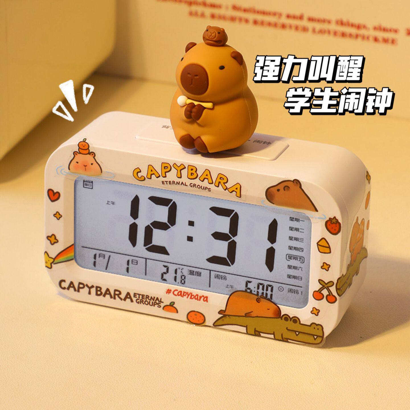 闹钟学生用起床神器可爱儿童女孩智能2026新款桌面电子时钟小夜灯