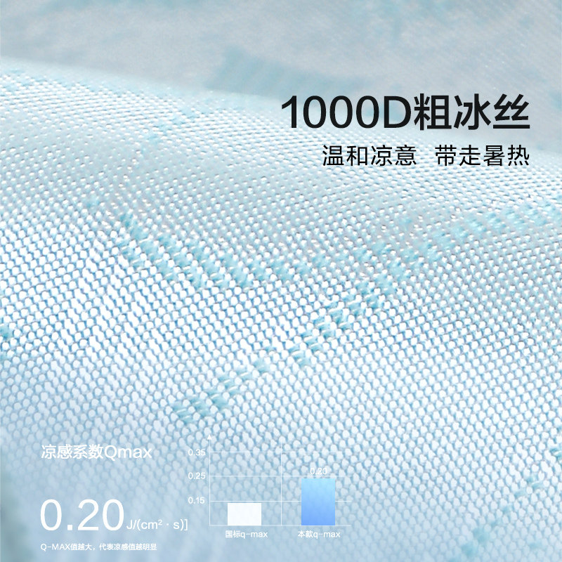 富安娜1000D冰丝凉席A类单双人席子凉感可水洗提花席枕套床品