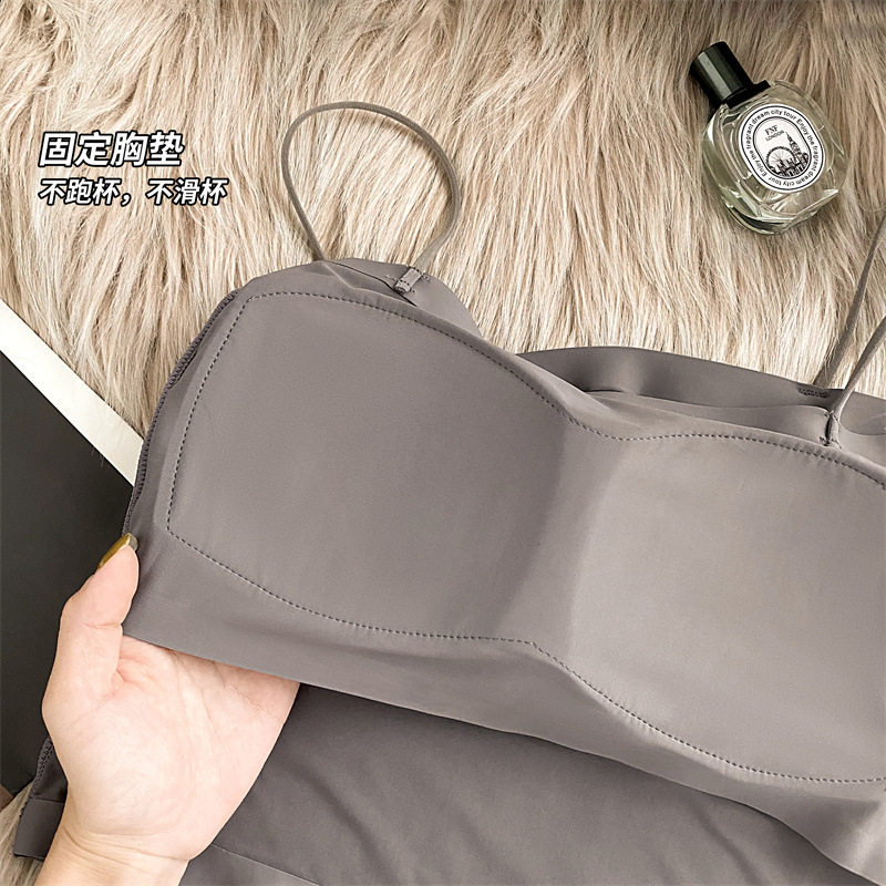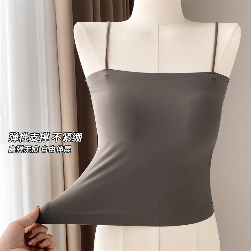夏季美背冰丝吊带内搭杯背心女夏打底防走光抹胸裹胸内衣文胸白色