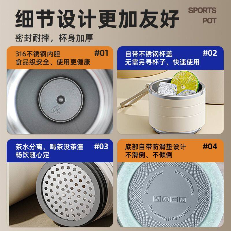 保温杯316不锈钢双饮咖啡杯大容量女高颜值随行吸管水杯情侣杯子