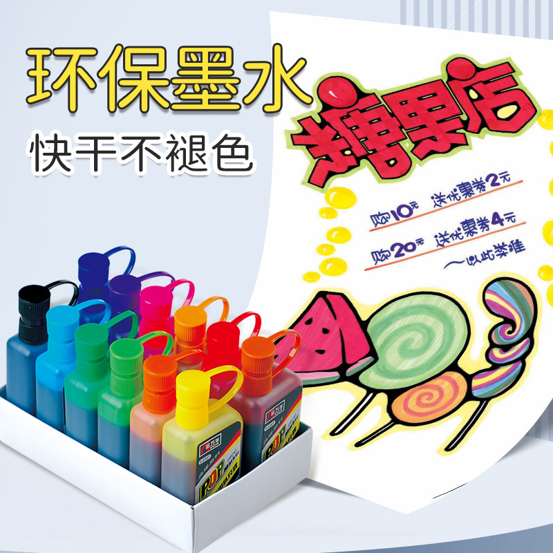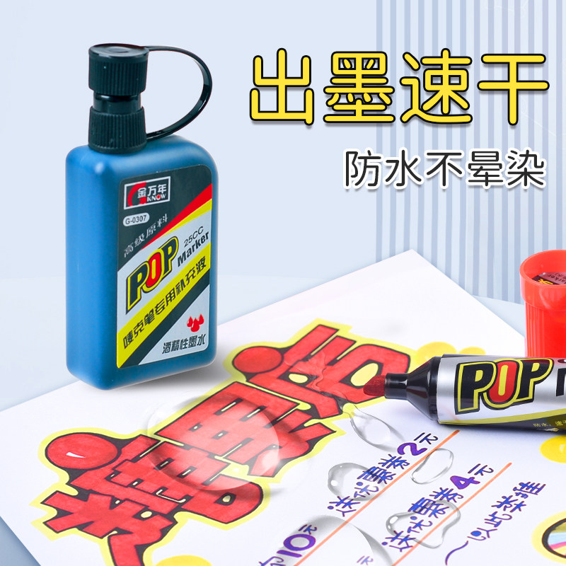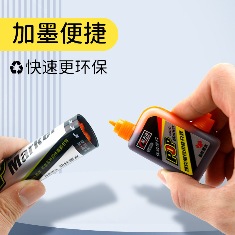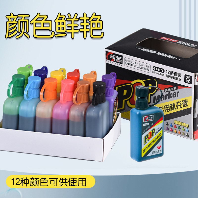 金万年pop笔补充液唛克笔墨水12色套装马克笔麦克笔超市用海报笔美工笔大头笔彩色记号笔油性墨水广告设计笔