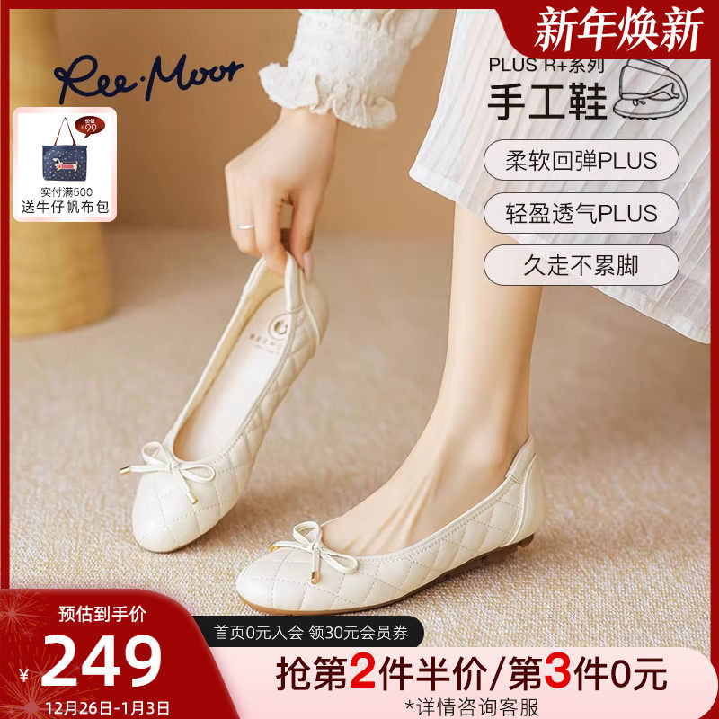 REEMOOR睿慕PLUS系列2025新款格纹圆头平底浅口单鞋船鞋蛋卷鞋女