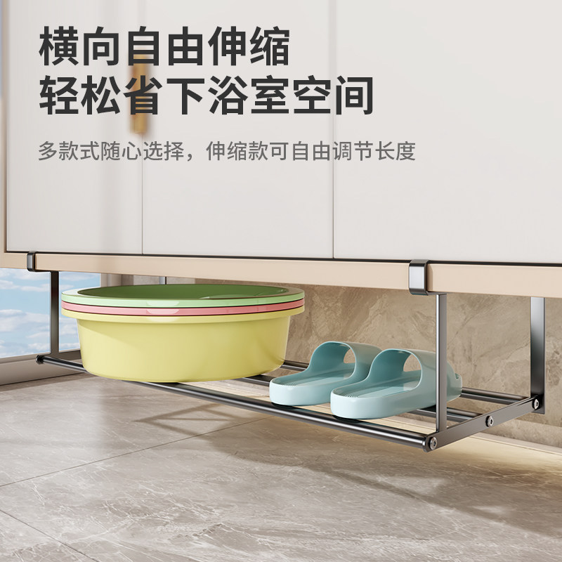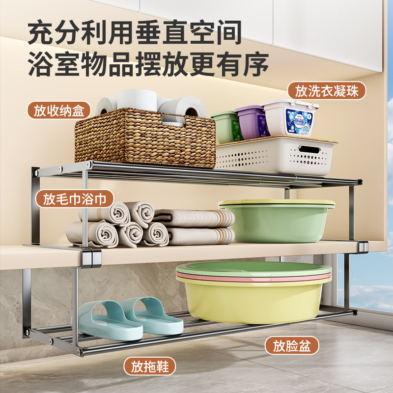 洗脸盆收纳架卫生间浴室柜下分层置物架免打孔洗漱台悬挂架子伸缩