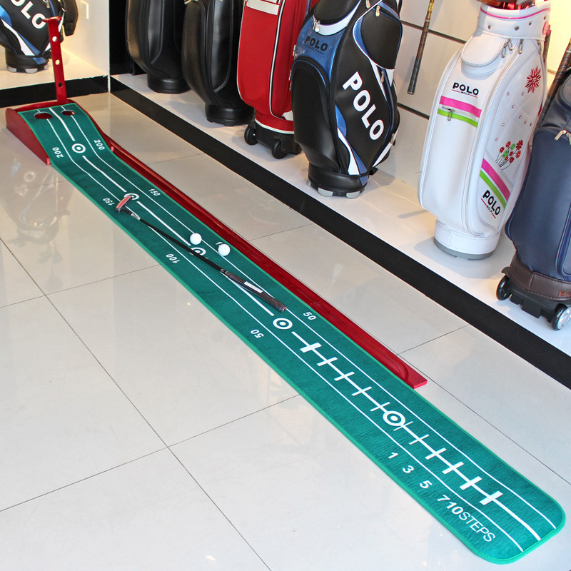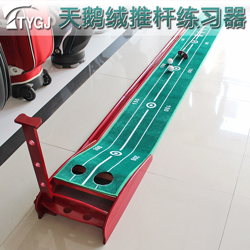 高尔夫推杆练习套装 实木推杆练习器办公室练习毯迷你果岭毯球道