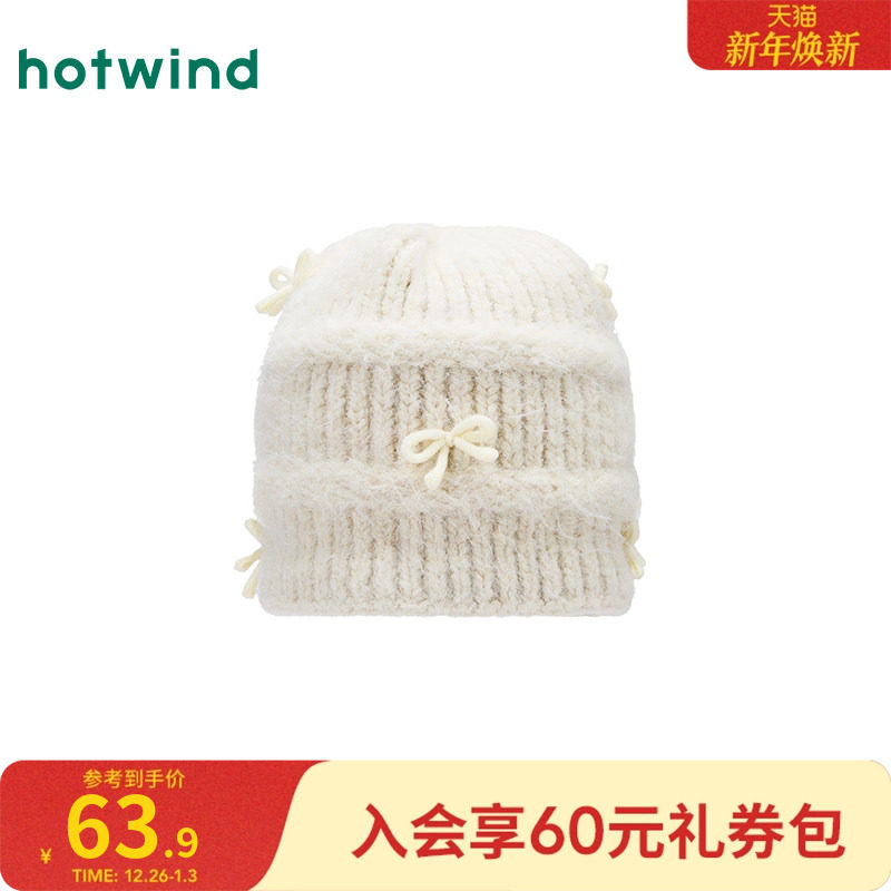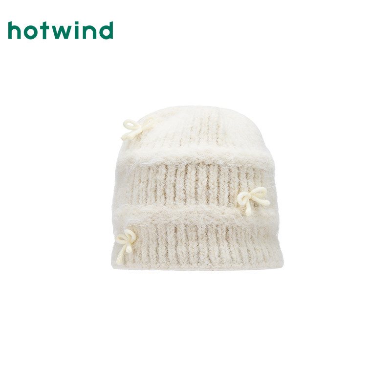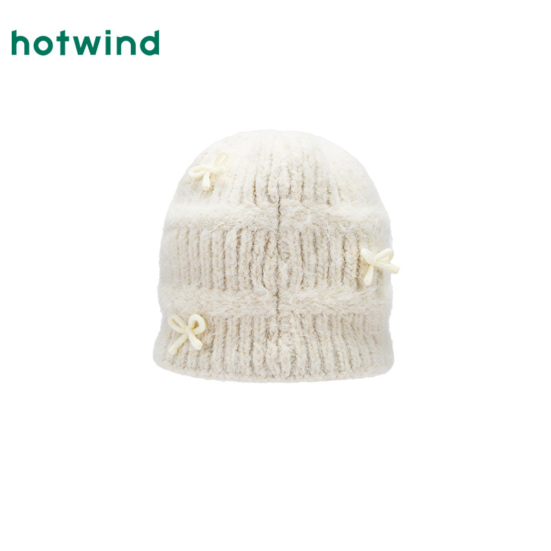 热风女士帽子2025年冬季新款蝴蝶结时尚毛线帽芭蕾风韩系毛线帽子