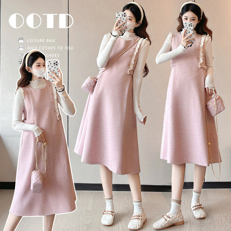 婧麒孕妇装新款小香风孕妇连衣裙毛衣打底衫孕期高级孕妇裙子冬装