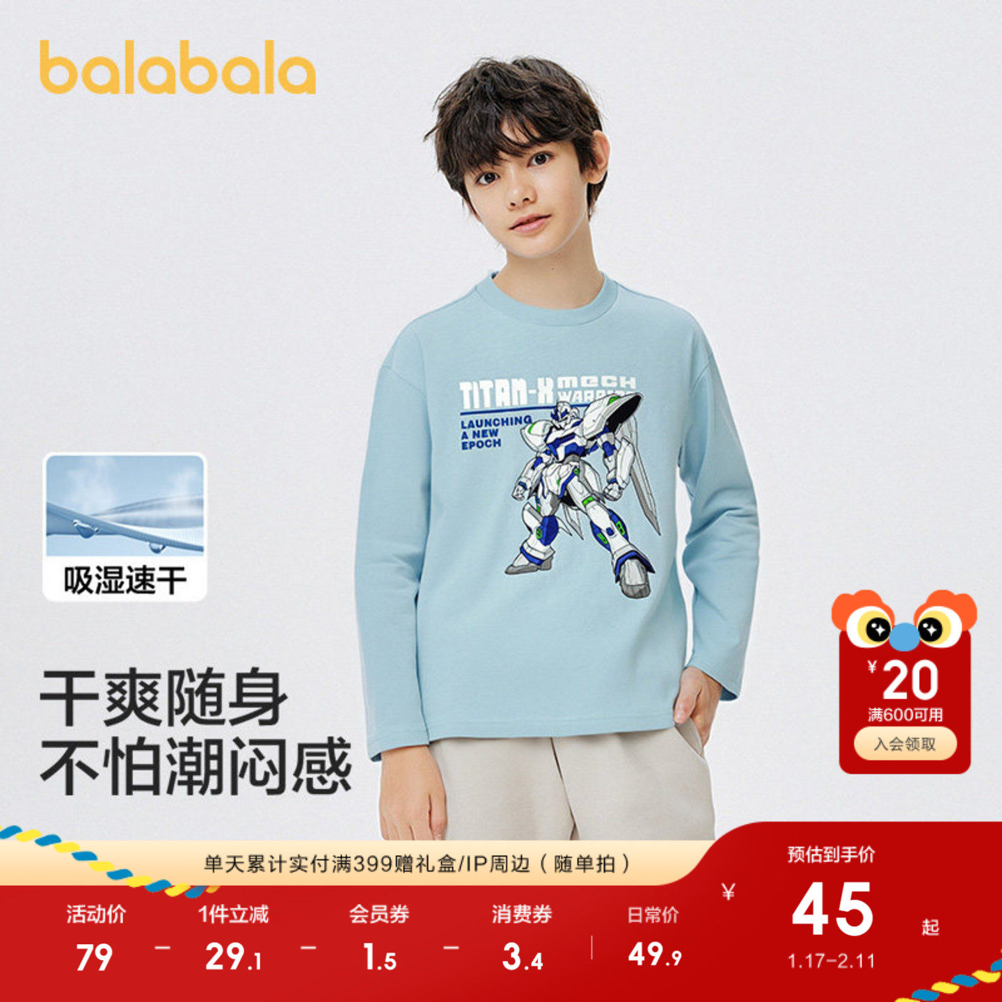 巴拉巴拉童装男童长袖t恤儿童2025新款夏装大童机甲印花上衣休闲