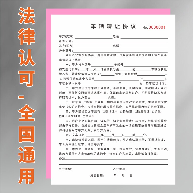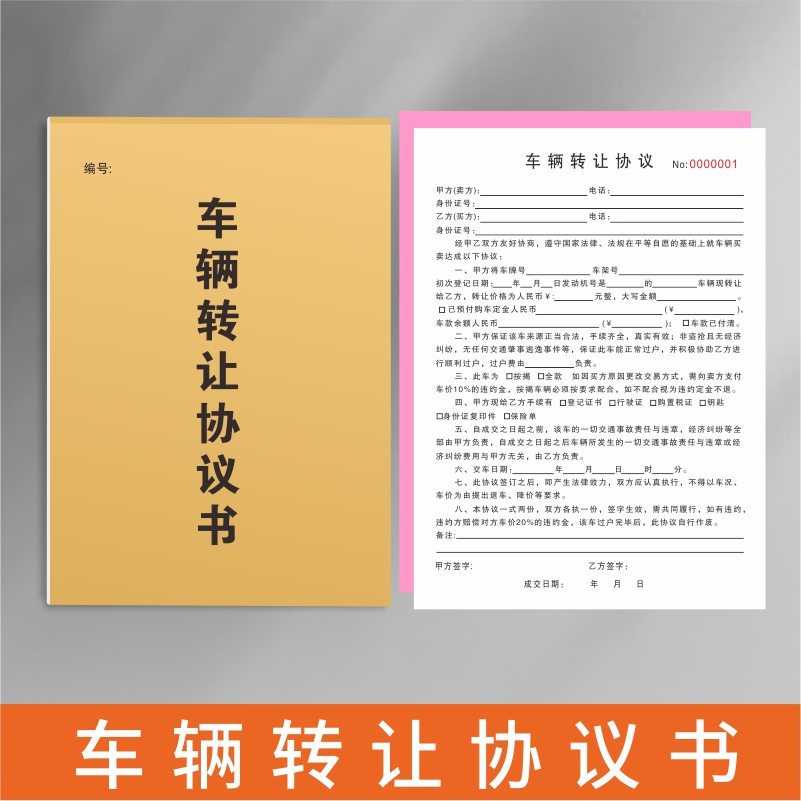 车辆转让协议书二手旧汽车买卖转让交易合同收购机动车销售单据