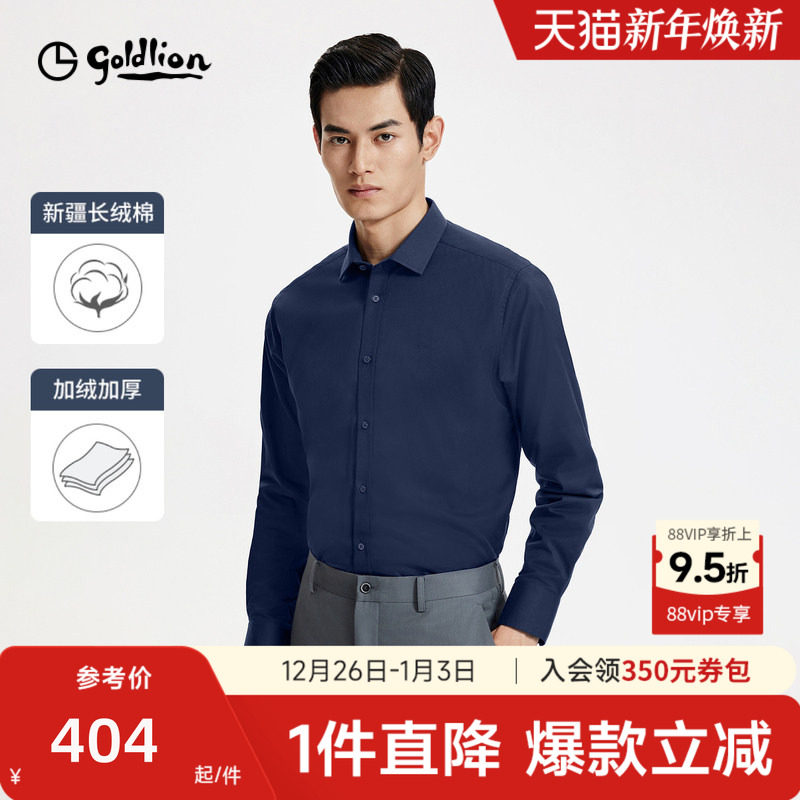 【加绒加厚】金利来秋冬新款男士长袖衬衫保暖长绒棉商务正装衬衣