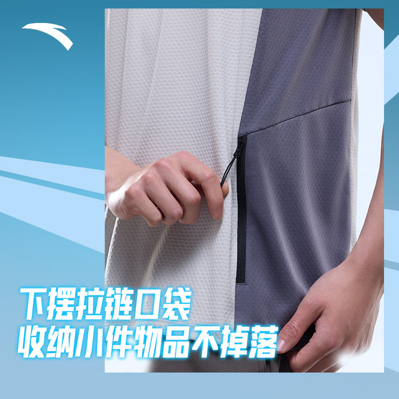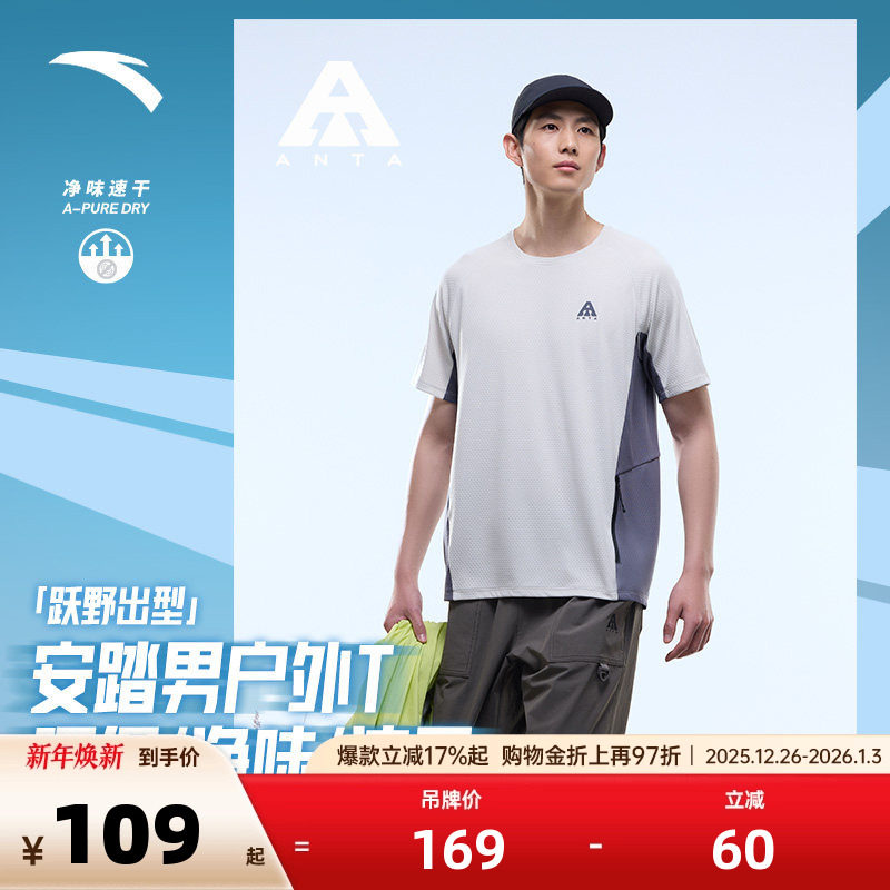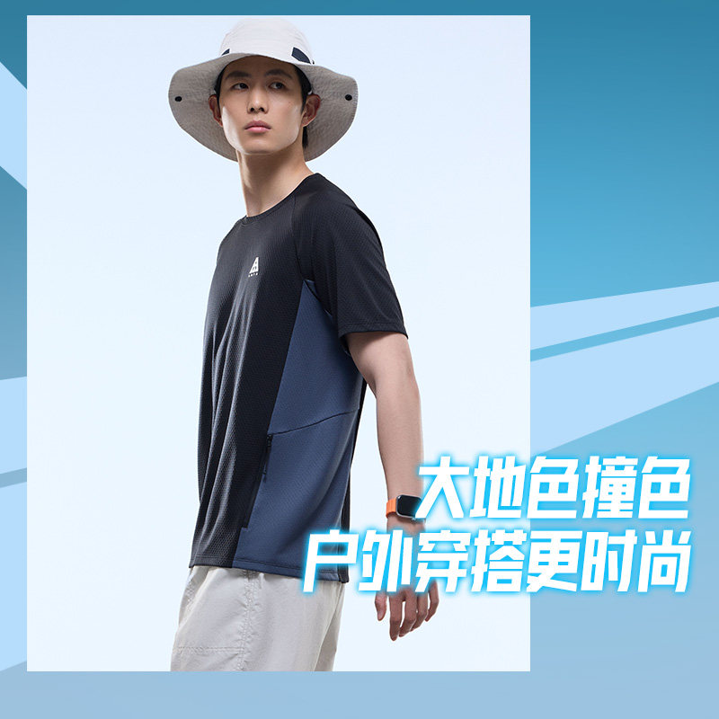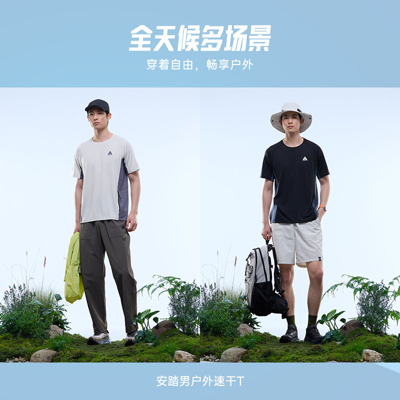 安踏户外速干运动短袖t恤男士秋季撞色拼接透气徒步半袖上衣