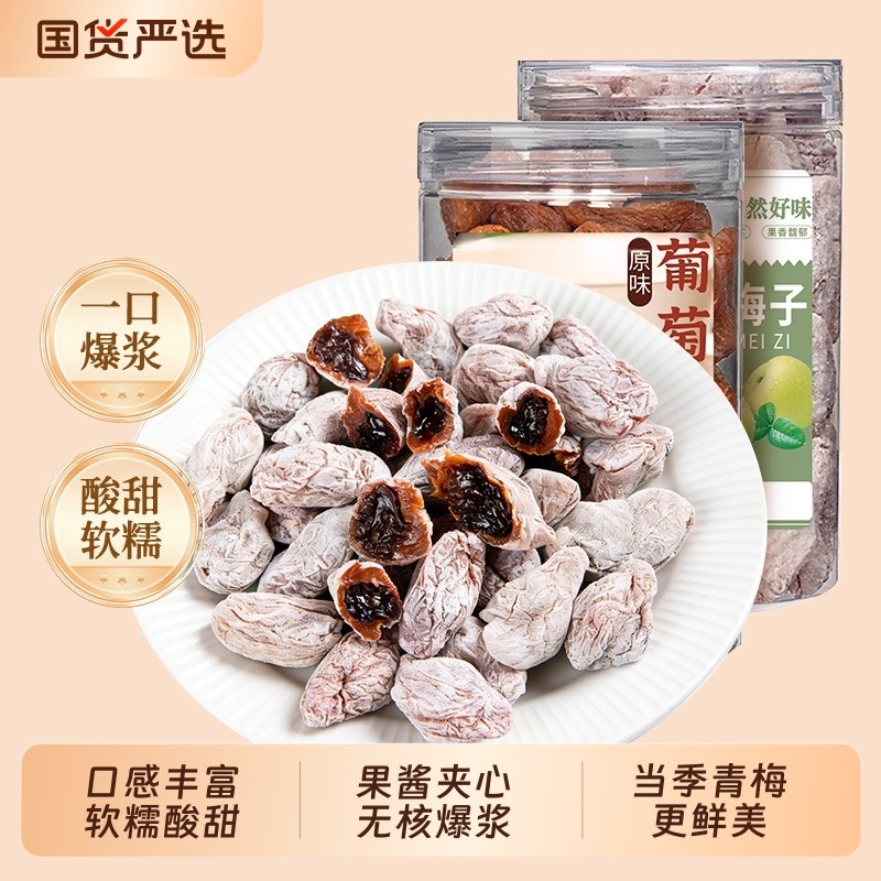 春江月青梅抱葡萄陈皮梅子蜜饯果脯干酸话梅干爆浆夹心葡萄干零食