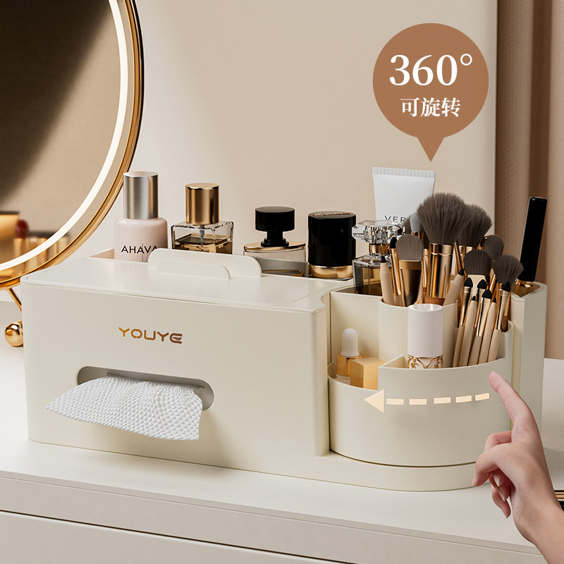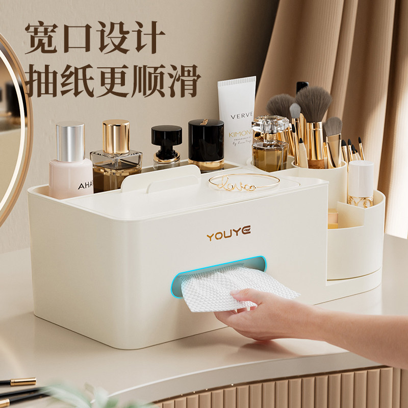 桌面化妆品收纳盒子客厅茶几化妆刷口红置物架办公室纸巾抽纸杂物