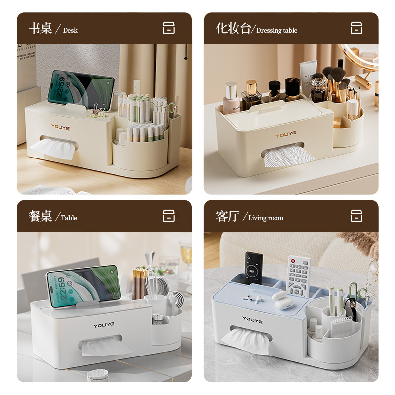 纸巾盒,化妆品刷子收纳盒,自带手机支架