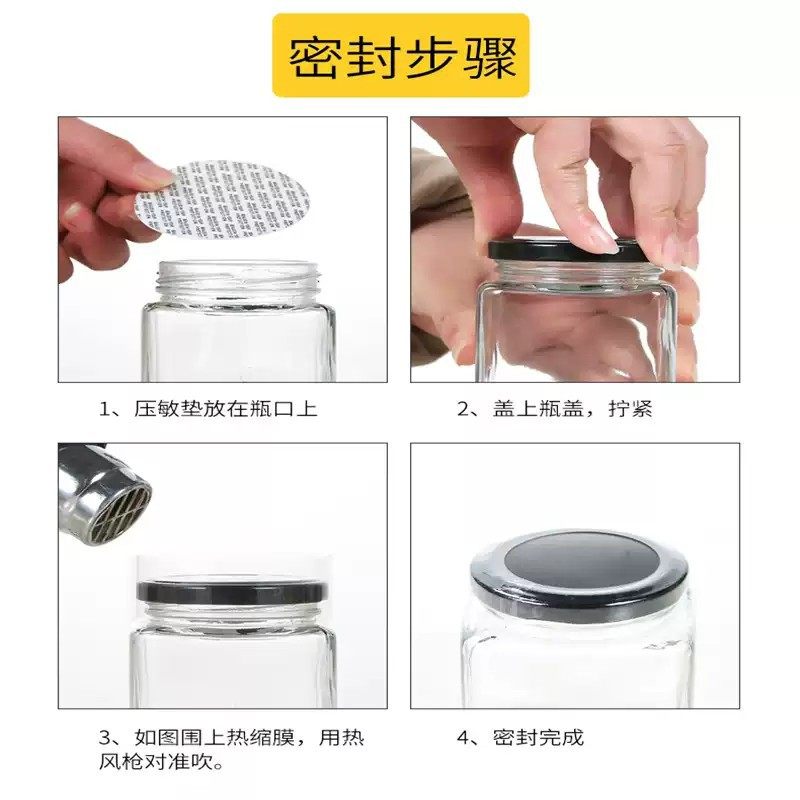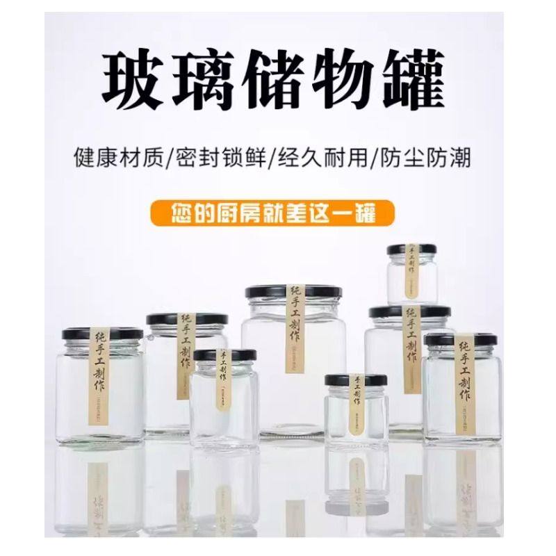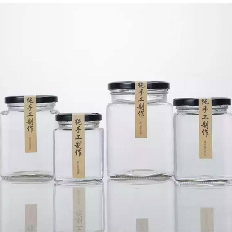 食品级四方玻璃瓶蜂蜜瓶 透明加厚密封罐带盖空 辣椒酱瓶果酱菜瓶