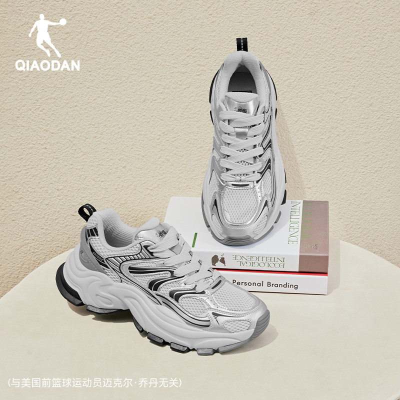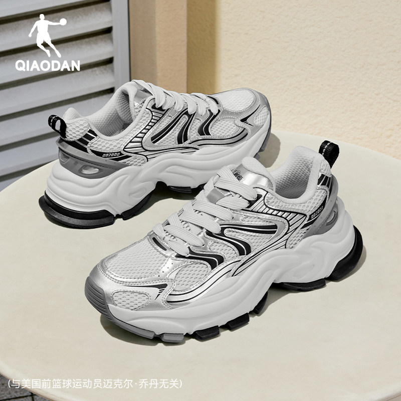 骆驼星尘休闲鞋女新款黑银运动鞋网面透气百搭厚底增高复古老爹鞋