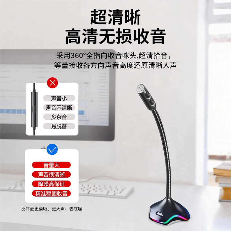 麦克风话筒一体电脑台式直播游戏语音会议电容麦主播降噪外接