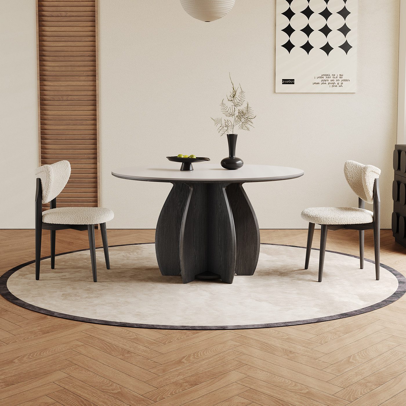 轻奢侘寂风餐椅皮软包设计师现代弯曲木咖啡厅实木椅子家用书房椅