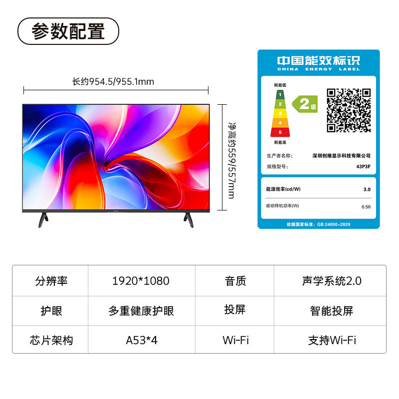 【政府补贴15%】创维酷开K3 25款43英寸智能投屏护眼家用电视机50