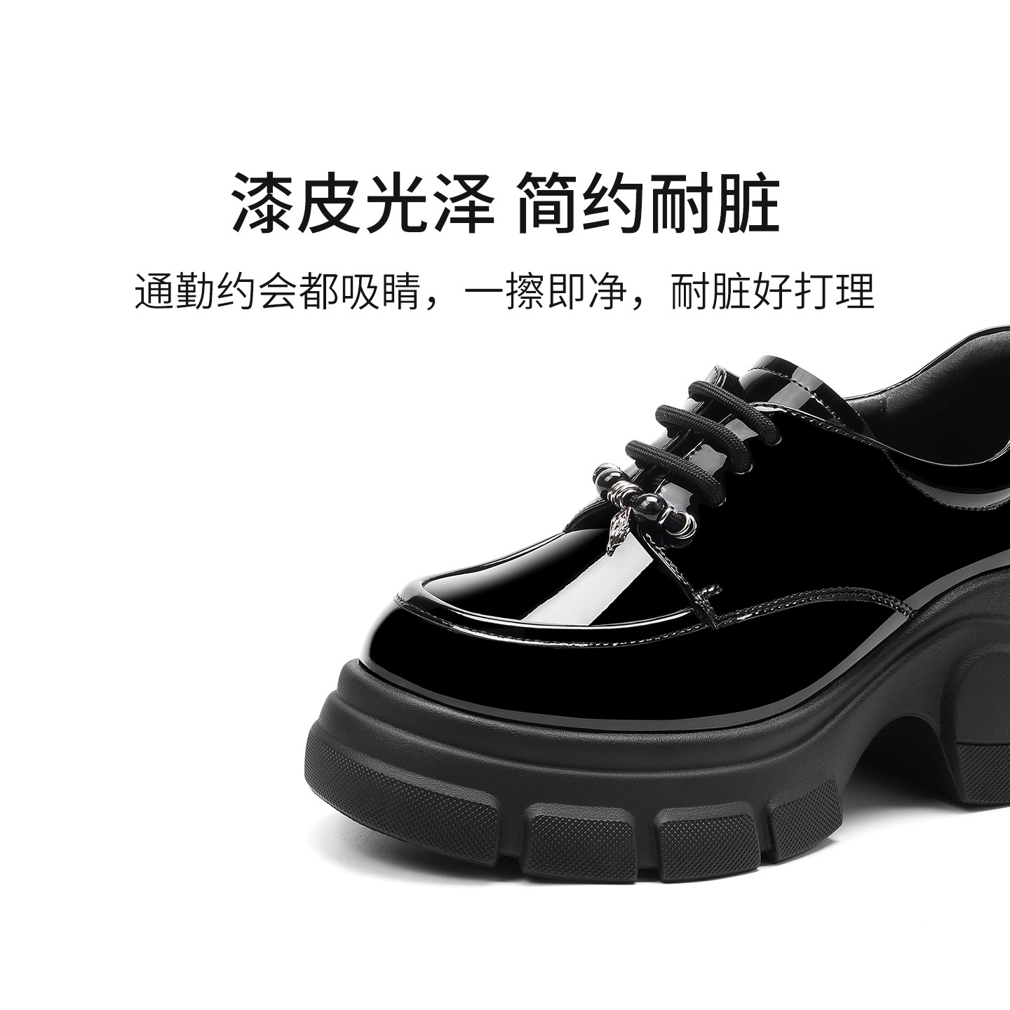 牛皮版~厚底增高乐福鞋女2025新款黑色通勤高跟单鞋英伦风小皮鞋