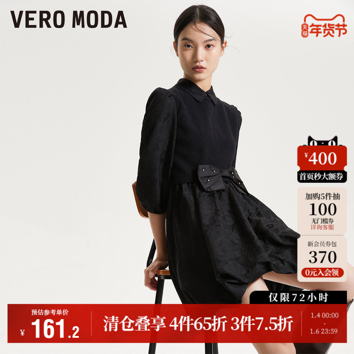 Vero Moda奥莱连衣裙子秋冬清仓假两件拼接针织蝴蝶结水钻短裙女