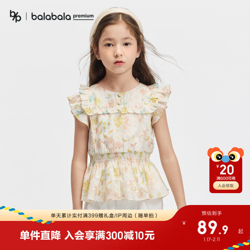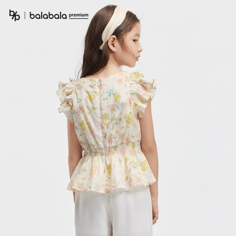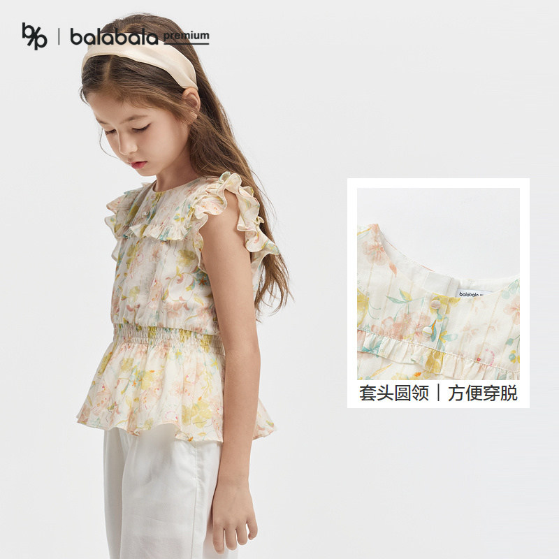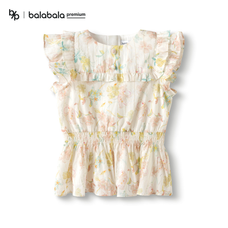 【premium】巴拉巴拉童装高端线夏探秘自然系列荷叶边短袖衬衫女