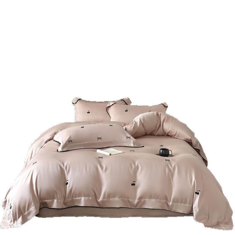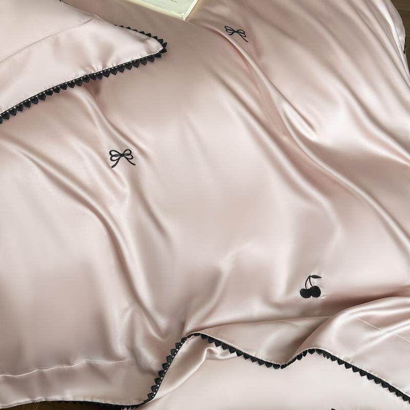 夏季60S双面水洗真丝四件套凉感丝滑被套蝴蝶结刺绣冰丝床单床品4