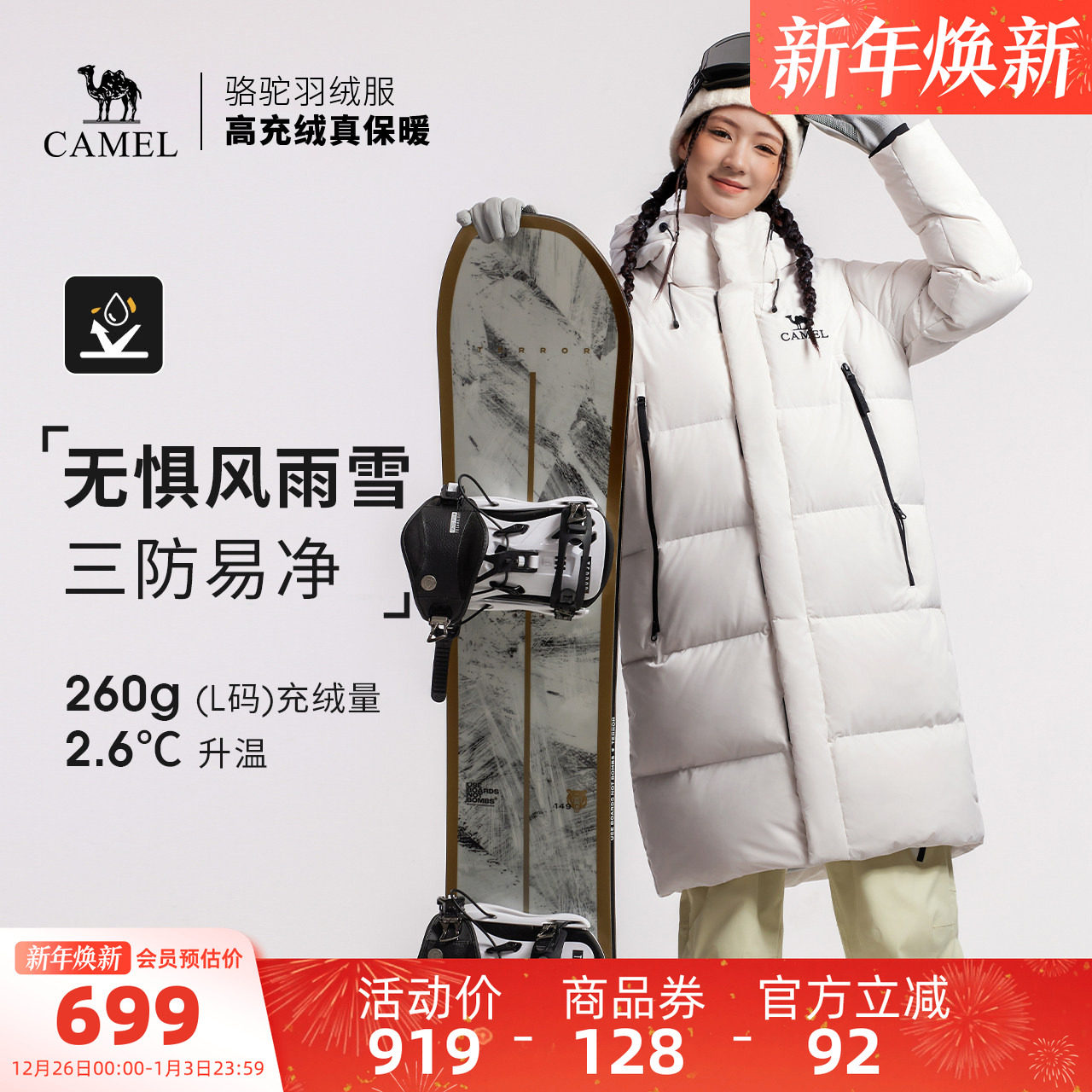 骆驼户外羽绒服25冬季男女加厚保暖拒水防泼水面包服百搭外套