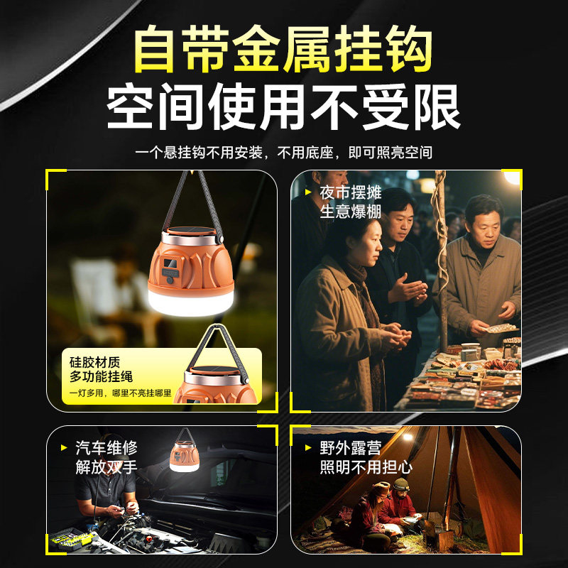 太阳能户外露营灯长续航家用超亮应急灯夜市摆摊充电led照明灯泡