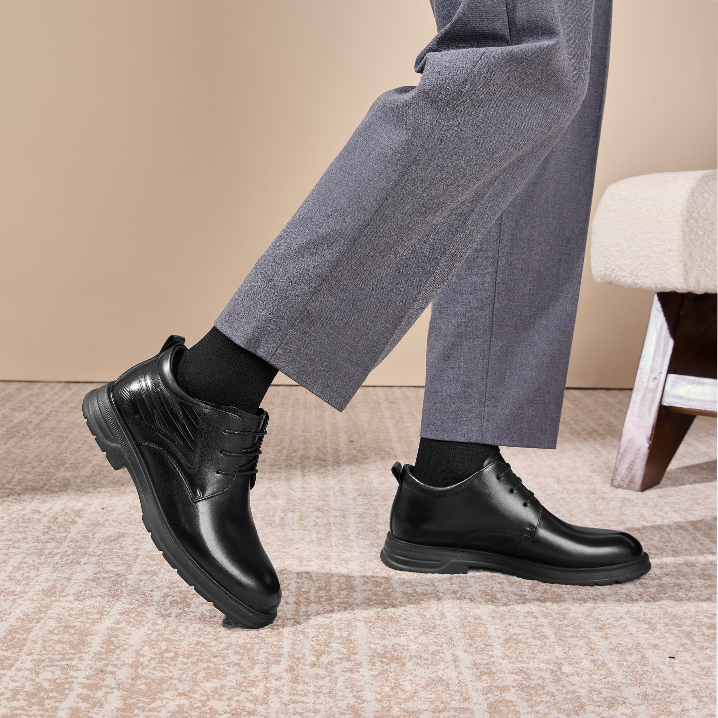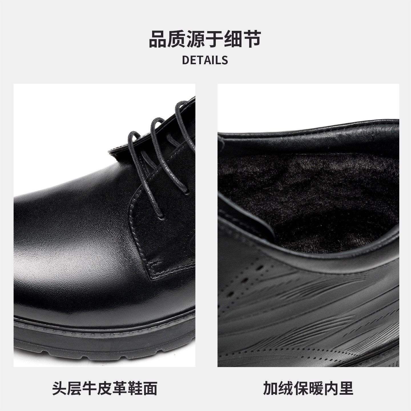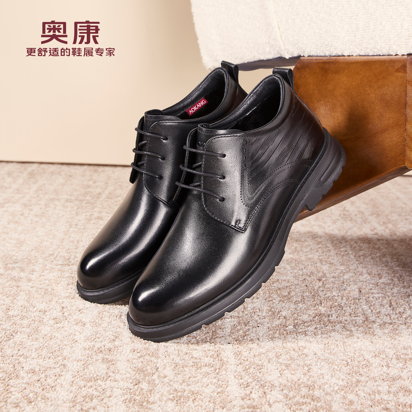 奥康 男鞋2025冬季新款正装皮鞋加绒保暖厚底增高商务休闲布洛克