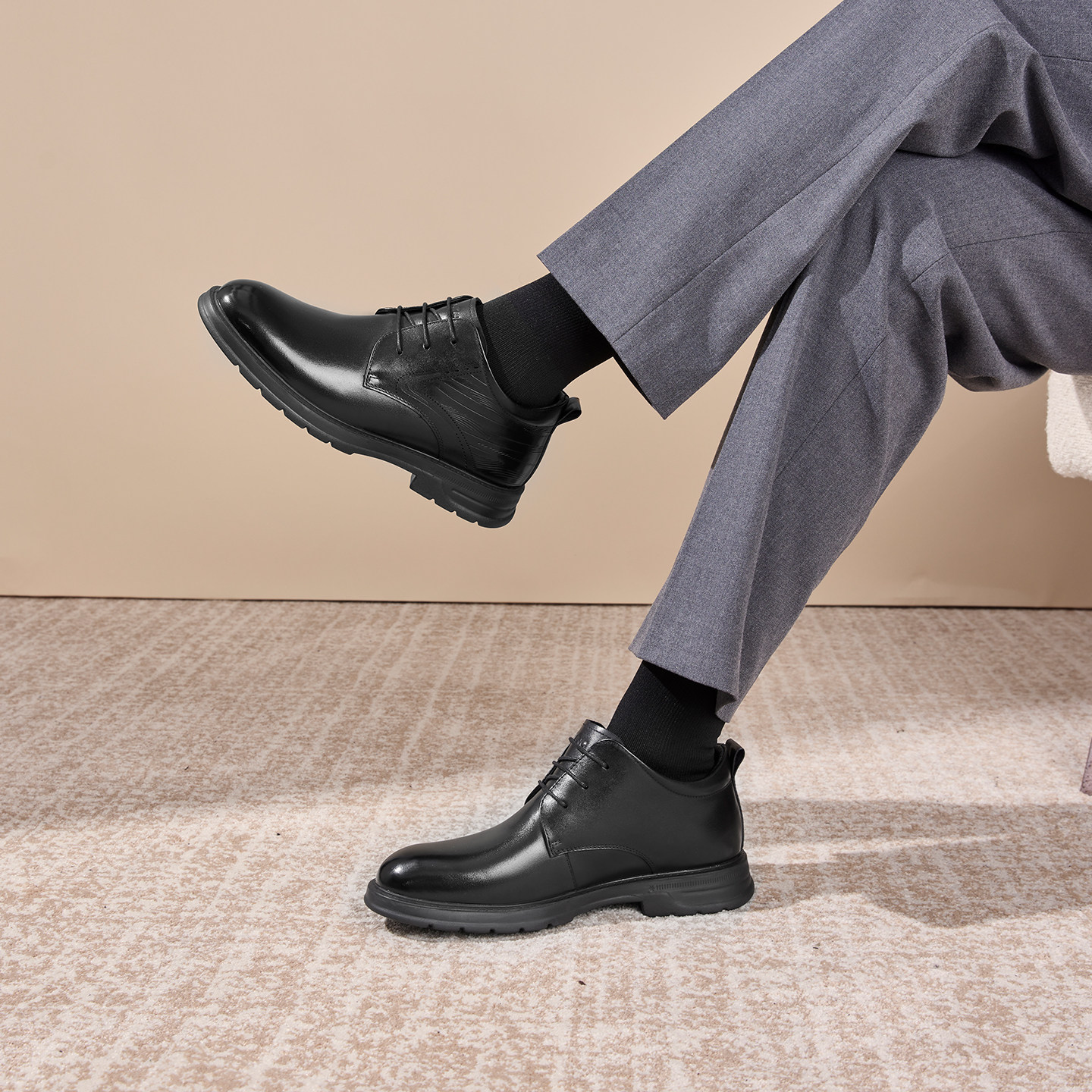 骆驼2025冬季舒适休闲加绒皮鞋男结婚新郎正装商务真皮增高德比鞋